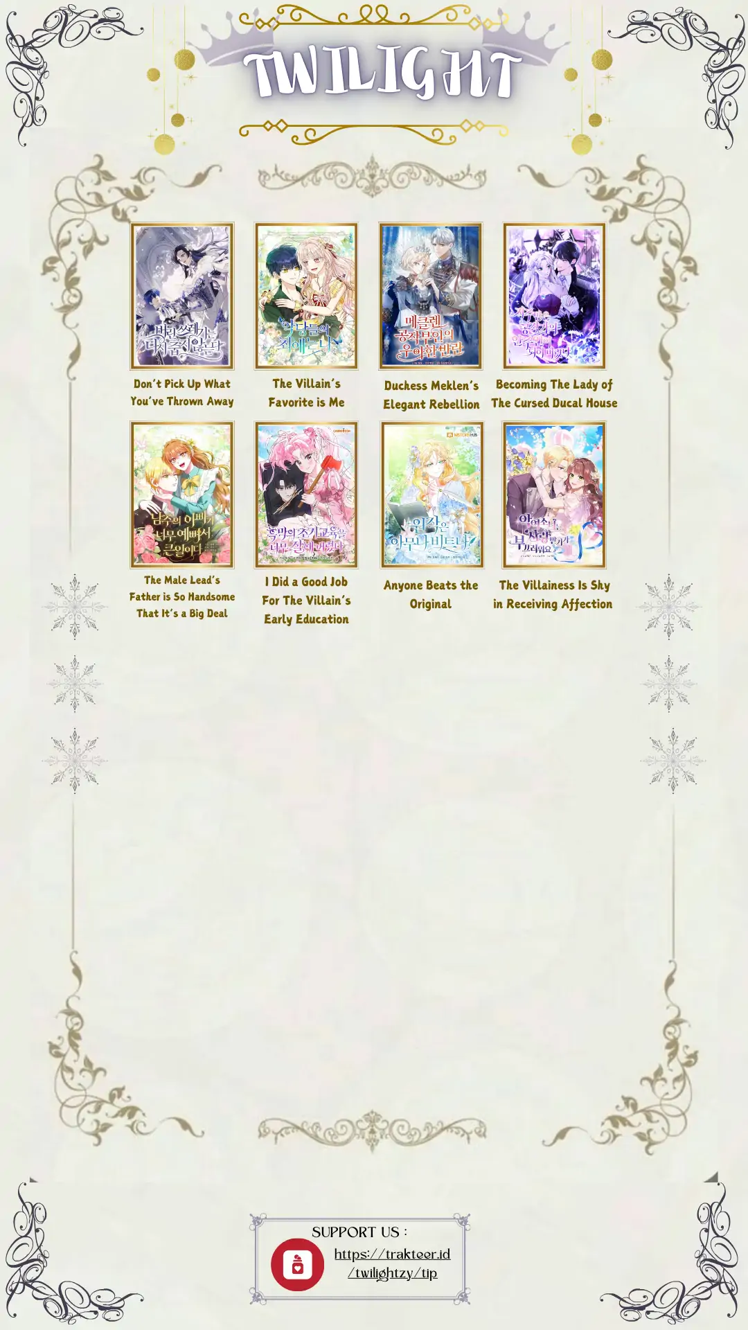 Baca Komik The Villainess Is Shy in Receiving Affection Chapter 80 di DailySuka . Komik The Villainess Is Shy in Receiving Affection selalu diperbarui di DailySuka . Jangan lupa baca Komik terbaru Lainnya. Koleksi komik DailySuka ada pada menu daftar komik.